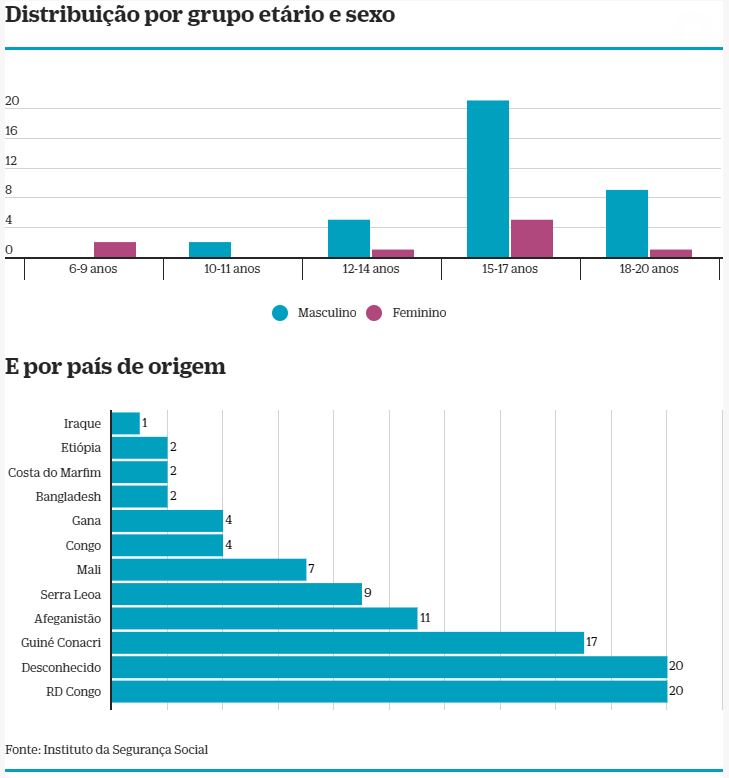 Há um mês, a Europol alertou para o aumento do tráfico de crianças africanas que passam por Portugal com destino ao Reino Unido e a países da Europa Central, como a Alemanha, França e Bélgica. E se o relatório agora publicado pelo Instituto de Segurança Social não pode ser usado para ter pistas sobre os países de destino destes jovens, deixa poucas dúvidas sobre as suas origens: das 11 nacionalidades mais representadas nos centros de acolhimento nacionais, nove são da África subsariana - República Democrática do Congo, Guiné-Conacri, Serra Leoa, Mali, Congo, Gana, Costa do Marfim e Etiópia.